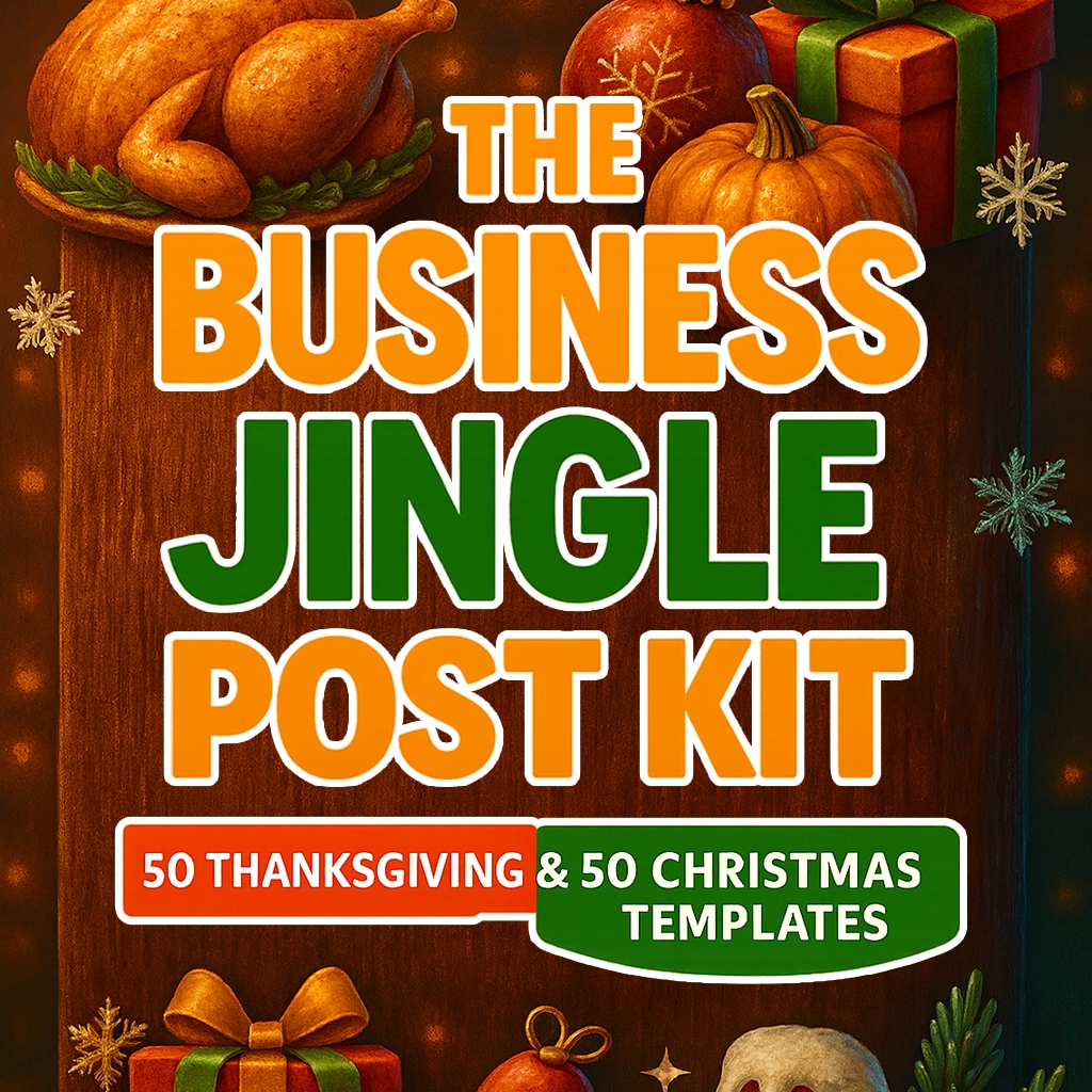 Filled with clever, motivational, and high-converting Thanksgiving and Christmas posts, the Business Jingle Post Kit gives entrepreneurs 100 editable Canva holiday templates so your brand can stand out, stay consistent, and sell more, even during the busiest time of year.